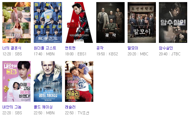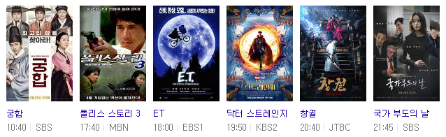 추석연휴를 앞두고 연휴기간 TV를 통해 볼 수 있는 특선영화를 알아봤다.