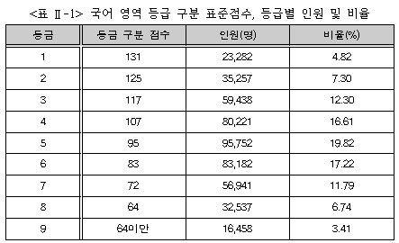 ◦ 국어 영역의 경우 131점으로 나타났다.