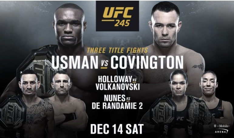 UFC 245 메인카드 경기는 12월 15일 (일요일) 낮12:00 부터 생중계 됩니다. 경기 시간 참고하세요.