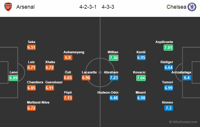 첼시는 4-3-3 포메이션에 케파 아리사발라가, 아스필리쿠에타, 피카요 토모리, 튀디거, 리스 제임스, 메이슨 마운트, 코바치치, 캉테, 오도이, 에이브라함, 윌리안 출전 선발 명단입니다.