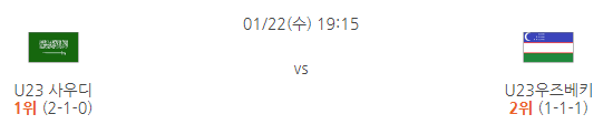 사우디 대 우즈베키스탄은 22일 수요일 저녁 7시 15분에 경기를 치릅니다.
