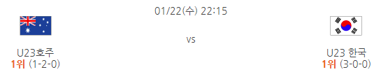 1월 22일 수요일 호주 대 한국 저녁 10시 15분
