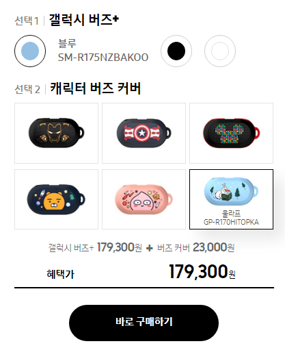 갤럭시 버즈 플러스 가격 - 179,300원, 버즈 커버 가격 23,000원 구매링크 바로가기