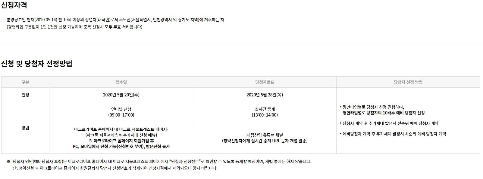 분양공고일 현재(2020.05.14) 만 19세 이상의 성년자(내국인)로서 수도권(서울특별시, 인천광역시 및 경기도 지역)에 거주하는 자