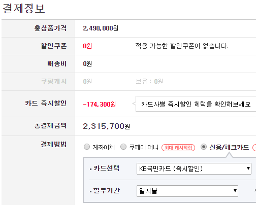 카드사 무이자 할부 최대 24개월까지 가능합니다.