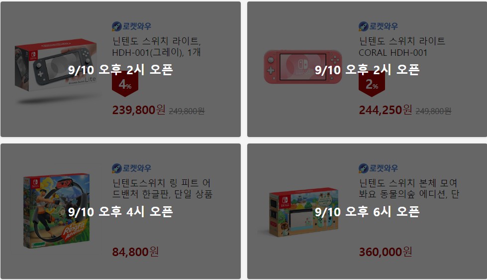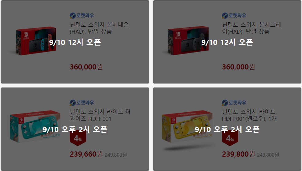 잠시 후 12시부터 닌텐도 스위치 본체 네온(그레이) 단일상품을 시작으로 2시 닌텐도 스위치라이트