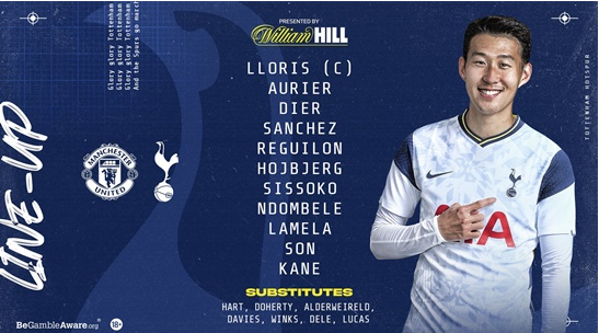 트넘은 손흥민을 비롯해 해리 케인, 에릭 라멜라, 탕귀 은돔벨레, 무사 시소코, 피에르 에밀 호이비에르, 세르히오 레길론, 다빈손 산체스, 에릭 다이어, 세르주 오리에, 위고 요리스를 스타팅으로 출전합니다.