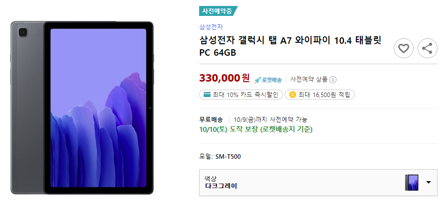 갤럭시 탭 A7 사전예약 시작 10% 카드즉시할인으로 구매가능합니다.