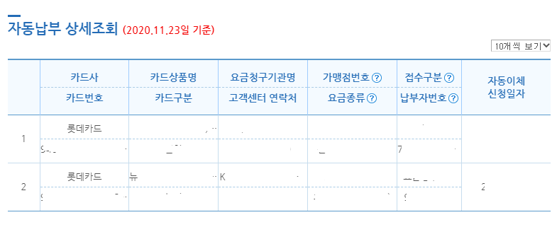3. 아파트관리비, 스쿨뱅킹의 경우 한 건의 자동납부가 여러 카드에서 중복으로 조회될 수 있습니다.