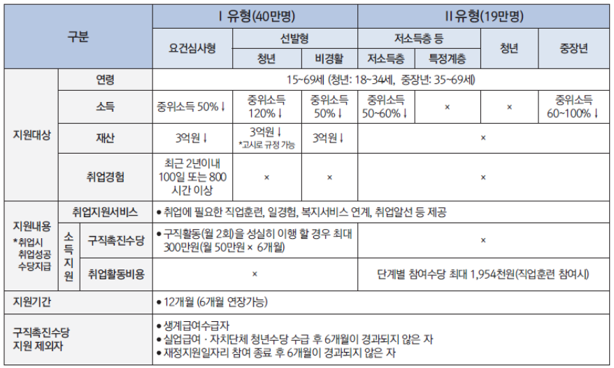 만 15~69세가 신청할 수 있으며 소득은 중위소득 50% 또는 100%(청년특례 120%)가 해당 됩니다. 물론 재산과 취업 경험 요건도 별도로 있습니다. 자세한 정보 안내드리겠습니다.