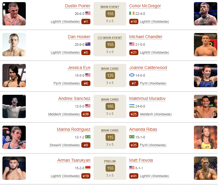 2014년 9월에 있었던 UFC178 이후 무려 6년만의 재대결이 성사되었으며 맥그리거가 또 한번의 승리를 가져갈 수 있을지 아니면 포이리에가 복수에 성공할지 격투기 팬들의 관심이 뜨겁습니다. 이번 UFC257의 코메인 이벤트는 라이트급 6위 댄 후커와 이번 무대가 데뷔전인 마이클 챈들러의 대결입니다. 데뷔전이 코메인 이벤트인 마이클 챈들러는 이전 단체인 벨라토르 라이트급 챔피언 출신입니다. 톱 랭커 댄 후커를 꺽고 벨라토르의 라이트급 챔피언 출신의 위용을 보여줄 수 있을지 기대됩니다. :)