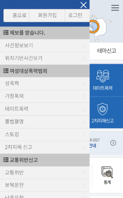 스마트폰이 아닌 웹을 통한 인터넷으로도 신고가 가능합니다.