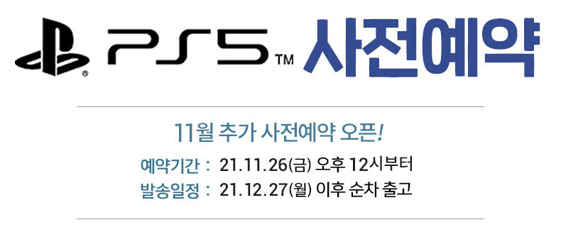 드디어 ps5 사전예약이 21년 11월 26일 금요일 낮12시 오픈됩니다.