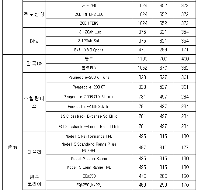 ZOE ZEN, i3 120Ah, 볼트, Peugeot, Model 3, EQA250 전기차 보조금 대상 차종 확인하세요.