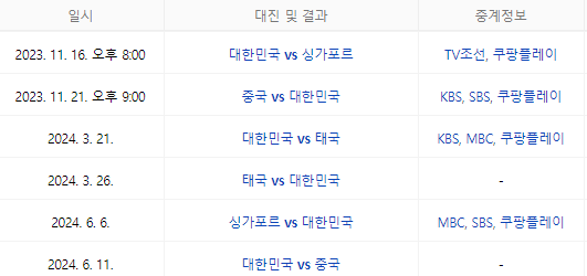 이번 중국과의 경기는 TV중계의 경우 KBS, SBS를 통해 시청할 수 있습니다. 한국 대 중국 인터넷(PC, 모바일)의 경우 쿠팡플레이 고화질 OTT서비스를 통해 보실 수 있으니 참고하세요.