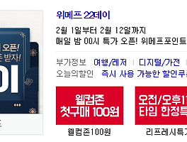 위메프 22데이 타임한정특가 이벤트 안내 (0) | 2019.02.01 |