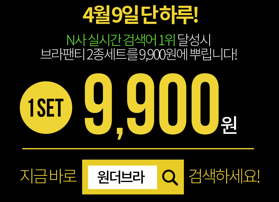 또한 원더브라는 N사 실검에 1위 달성시 브라팬티 2종 세트를 9,900원에 판매하겠다는