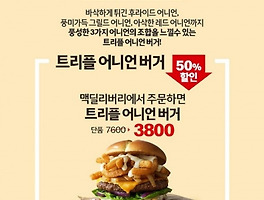 맥딜리버리 트리플 어니언 버거 단품 50% 할인 이벤트 (0) | 2019.04.16 |