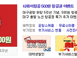 티웨이항공, 대구공항 취항 5주년 기념 500원 항공권 이벤트 (0) | 2019.04.22 |