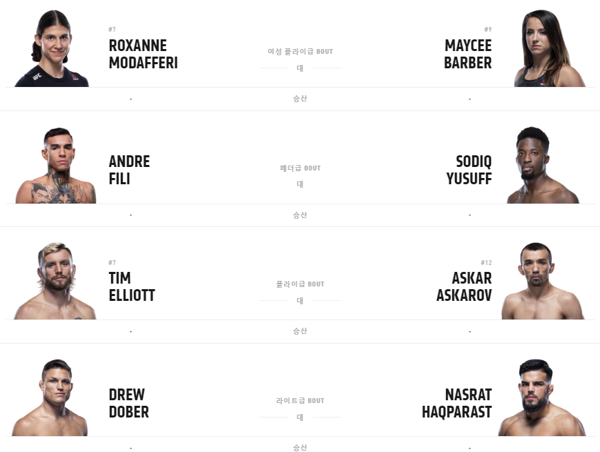 언더 카드(19일 일요일 오전 8시 30분)