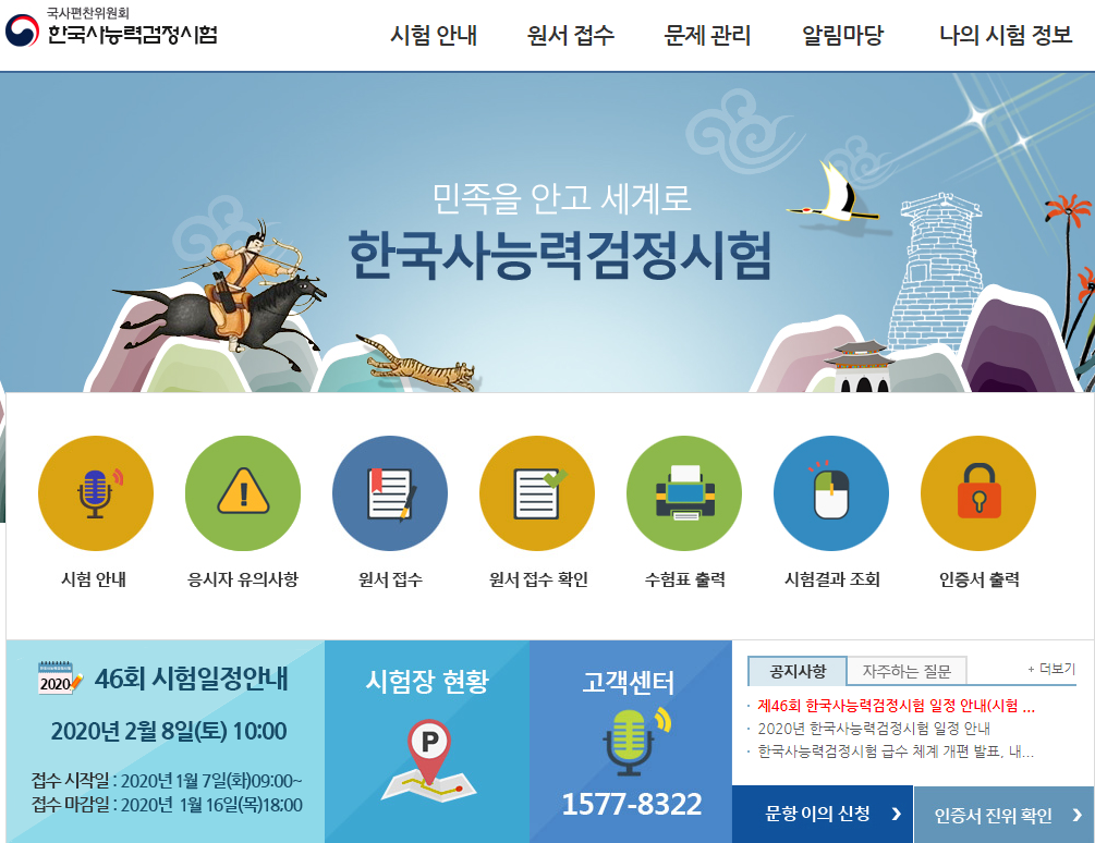 2020년 첫 한국사능력검정시험 접수가 시작되었습니다. 현재 홈페이지 접속이 원활하지 않아 응시자분들이