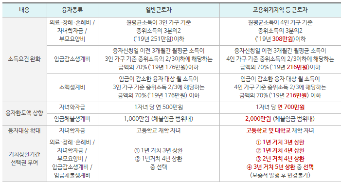 소득기준 및 신청요건이 2020년 3월 9일~2020년 7월 31일까지 한시적으로 완화 적용됩니다