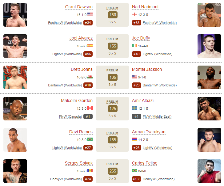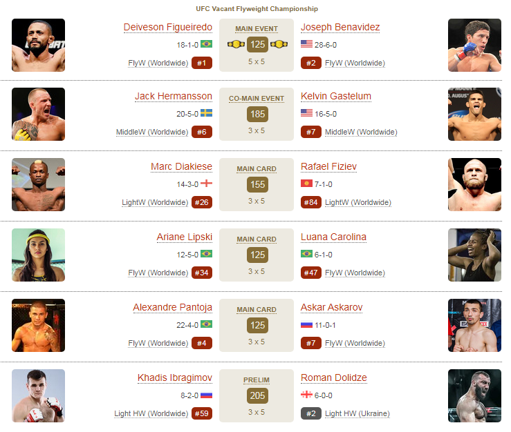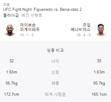 플라이급 랭킹 1위 디아비슨 피게레도(18-1-0, 브라질)와 랭킹 2위 조셉 베나비데즈(28-6-0, 미국)의 재대결이 펼쳐집니다.