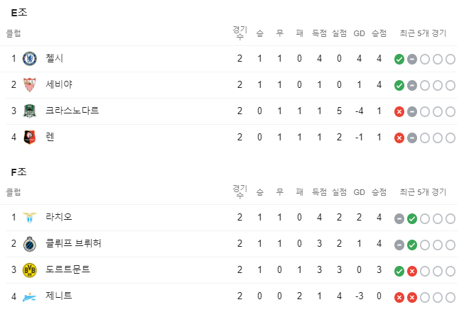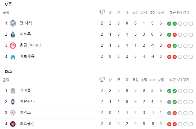 잠시 후 11월 4일 수요일(한국시간) 오전 2시 55분부터 로코모티브 VS AT마드리드, 잘츠부르크 VS 바이에른 뮌헨의 경기를 시작으로 챔피언스리그 경기가 펼쳐집니다. 각조별 2경기씩 처른 상태이며 이번이 3번째 조별리그 경기입니다. 각 조별 순위는 아래 확인하실 수 있습니다.