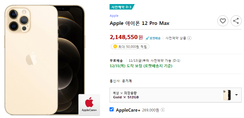 골드, AppleCare+포함 × 512GB https://coupa.ng/bMjcQG