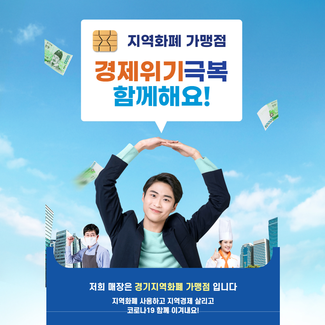 지역경제 활성화를 위해 31개 시·군에서 발행하고 사용하는 대안화폐로 대형마트, 백화점을 제외한 우리동네 상점에서 현금처럼 사용하실 수 있습니다.