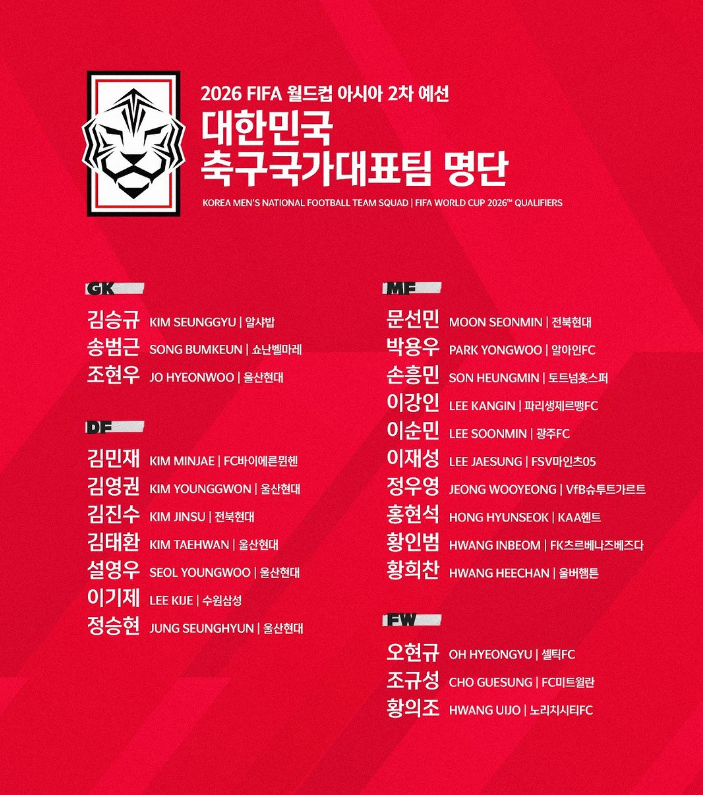 오현규(셀틱), 조규성(미트윌란), 황의조(노리치 시티FC)
