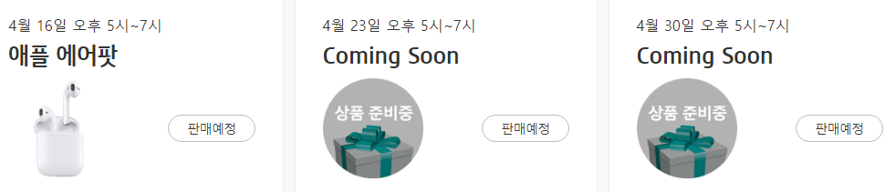 이번 이벤트 상풍은 애플 에어팟 이며 4월9일 오후 5시~7시까지 진행된다.